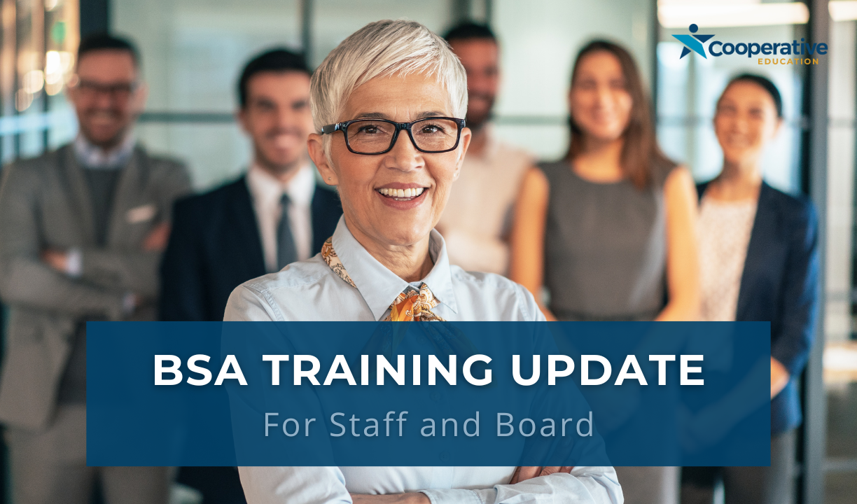 Cooperative Education provides complimentary Bank Secrecy Act training for all staff and board members of our member credit unions. Enjoy this valuable member benefit through on-demand videos, virtual events, or in-person sessions.